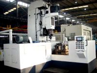 主減速器殼三軸鏜孔車端面機(jī)床,本機(jī)床是為粗加工、半精加工主減速器殼三孔及車削主減速器殼主錐端面而設(shè)計(jì)的專用機(jī)床。本機(jī)床采用立臥復(fù)合式三面結(jié)構(gòu),左右端各布滑臺(tái)和鏜頭,用于兩端孔的加工。立頭采用西德標(biāo)準(zhǔn)的DSS系列雙向刀盤鏜車頭,用于主錐端面孔加工,鏜車頭主電機(jī)采用變頻調(diào)速,以滿足鏜大小孔時(shí)切削速度的變化。中間采用數(shù)控滑臺(tái),滑臺(tái)上安裝液壓夾具,以適應(yīng)不同品種的偏置距。